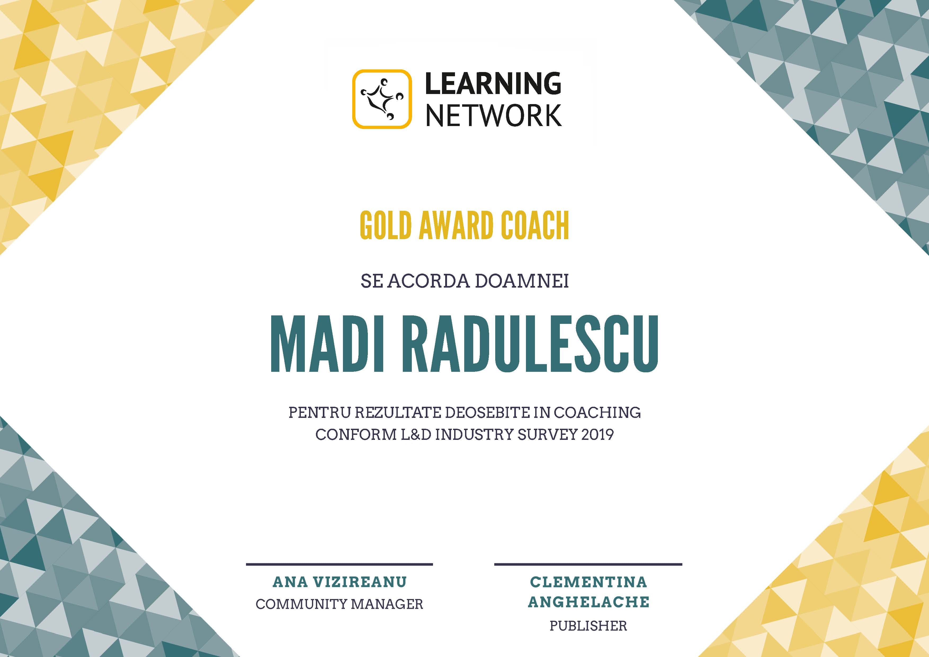 "Am avut placerea sa colaborez cu Madi in cadrul unui proces de coaching de aproape 1 an de zile. Consider ca a fost persoana potrivita sa ma ajute sa ma integrez pe o noua functie de management, foarte provocatoare si cu foarte multe implicatii pentru cariera mea. Am simtit ca am alaturi de mine un om care intelege, asculta, provoaca si cel mai important dezvolta pe cei cu care lucreaza. Recunosc ca am privit sesiunile noastre mai mult ca pe niste intalniri intre prieteni, foarte relaxante si cu mare deschidere. Recomand colaborarea cu Madi atat din perspectiva profesionala cat si umana. Felicitari Madi pentru toate proiectele in care esti implicata!